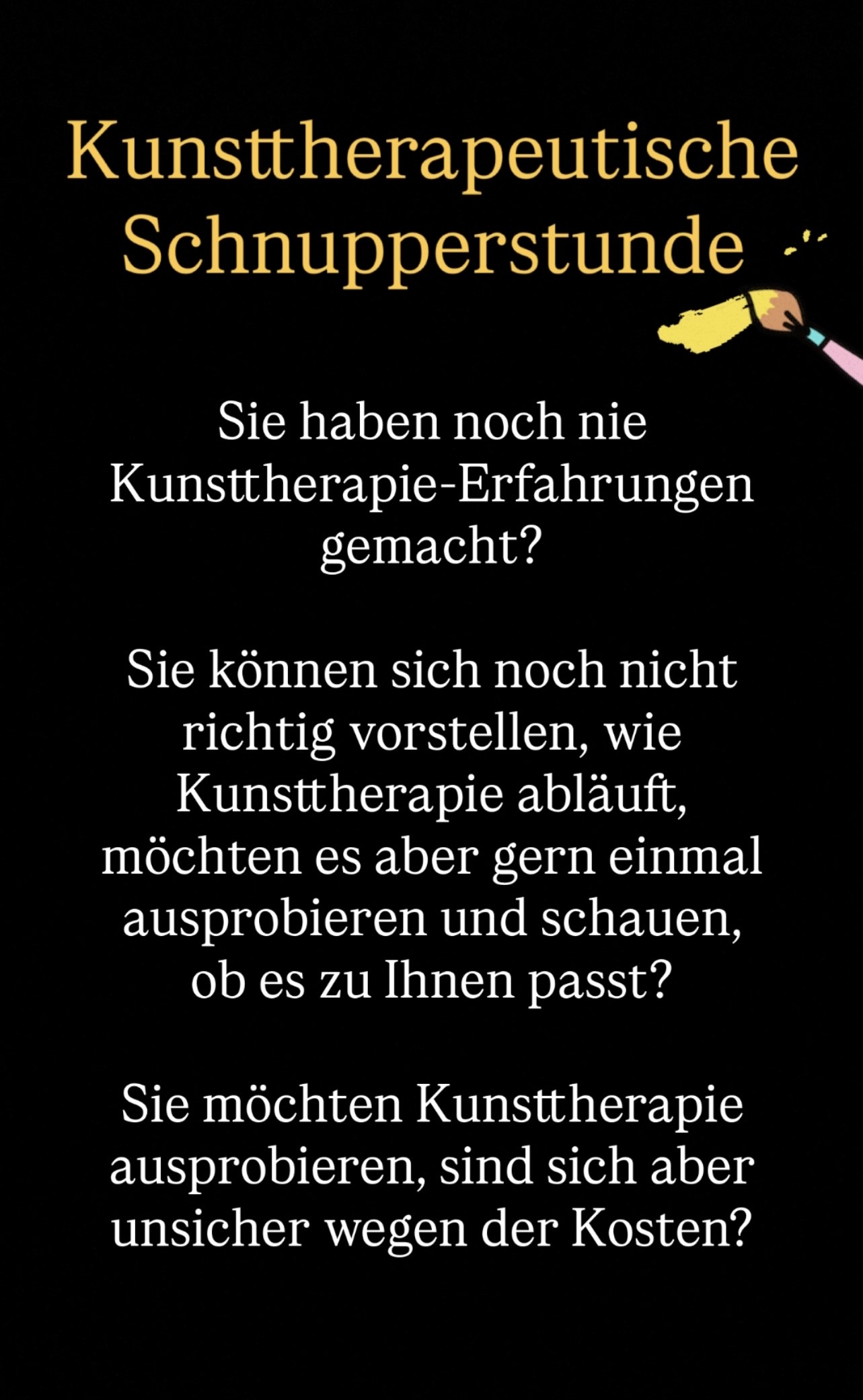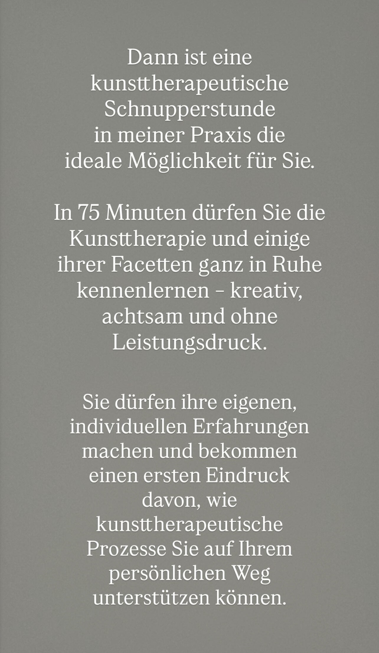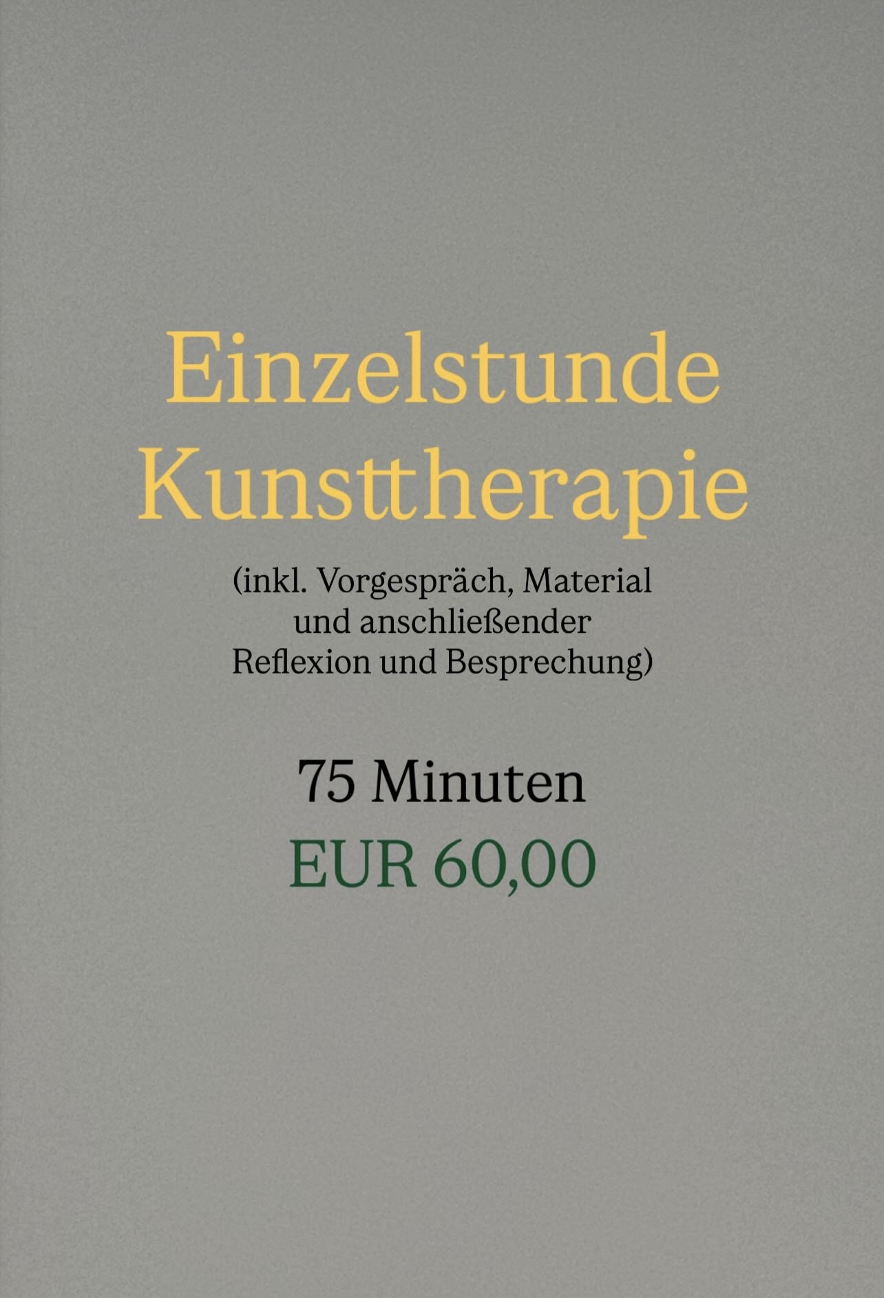 - Einzelstunde Kunsttherapie (inkl. Vorgespräch, Material und anschließender Reflexion und Besprechung)