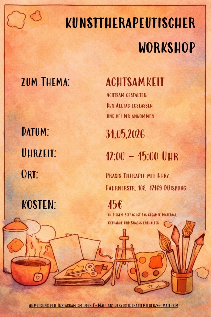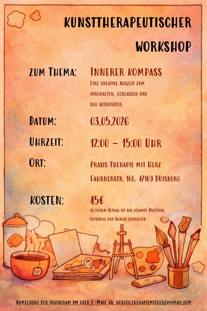 Kunsttherapeutische Impulse und Methoden begleiten den Prozess und können dich dabei unterstützen, dich den Themen auf deine eigene Weise zu nähern.